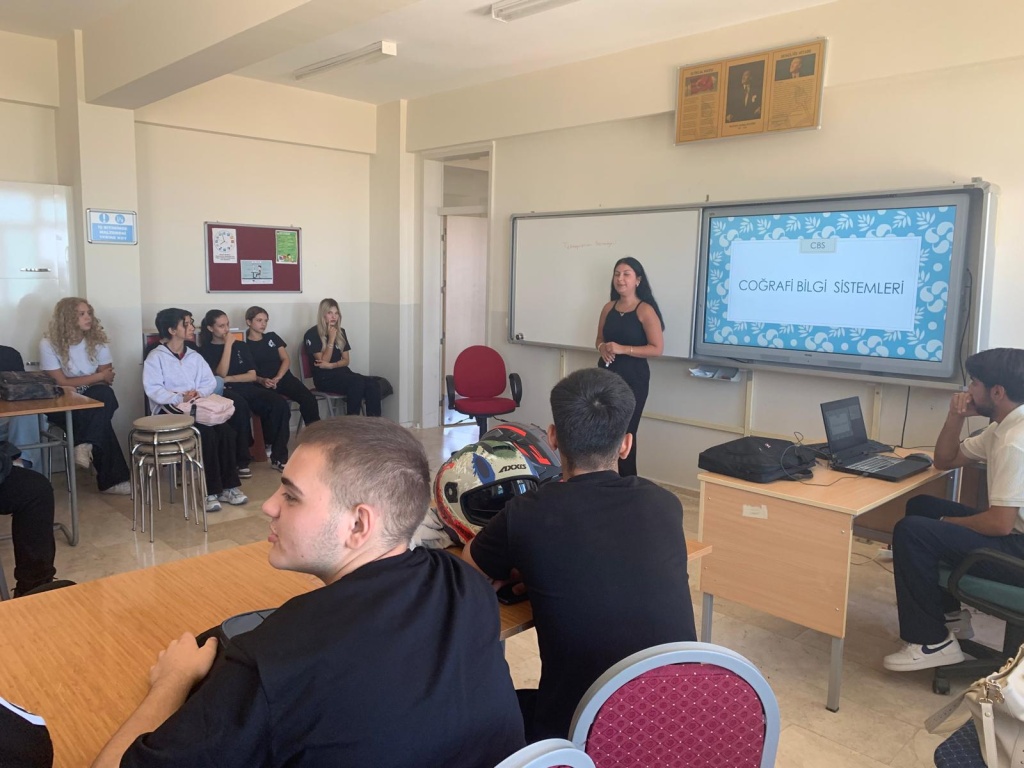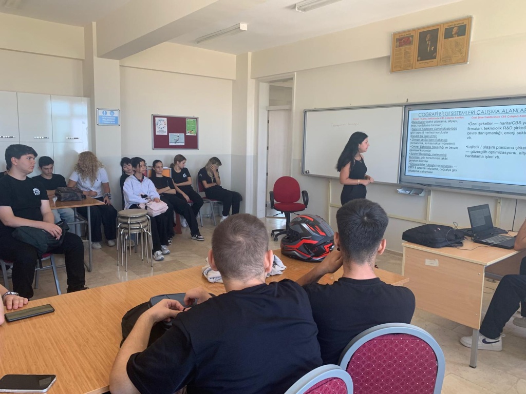 İş Adamları Mesleki ve Teknik Anadolu Lisesi Harita Tapu ve Kadastro ile Bilişim Teknolojileri bölümü 11 ve 12. sınıf öğrencilerine, mezun öğrencimiz Nevzat İŞLEK ve Büşra ERTUĞRUL tarafından Coğrafi Bilgi Sistemleri (CBS) konusunda bilgi verildi. Bilgilendirmenin amacı, öğrencilere CBS uygulamalarının temel ilkelerini öğretmek ve bu ortak çalışma alanının varlığını tanıtmaktı.
